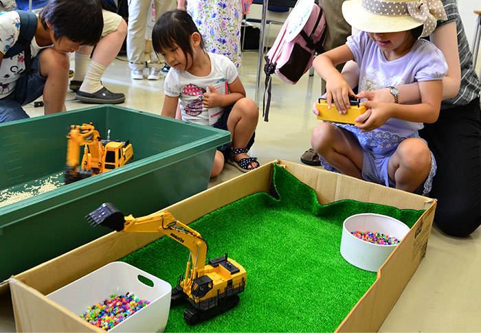 ラジコンバックホウとホイールローダーを使って宝石すくいゲームに挑戦してみよう!